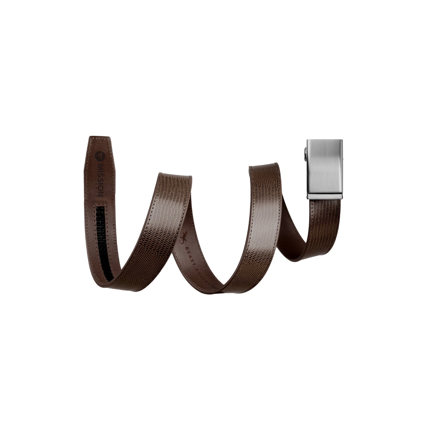 Meet The Beast Collection—no hunting permit required. These animal-skin-embossed leather belts bring apex energy without the whole "wrestling-a-crocodile" lifestyle choice. Same Mission Belt muscle, same no-BS ratchet fit, now dressed in textures that look like they could bite back. It's refined, a little reckless, and built for people who prefer their style with teeth. Clean enough for the office. Wild enough for after. Proceed accordingly.