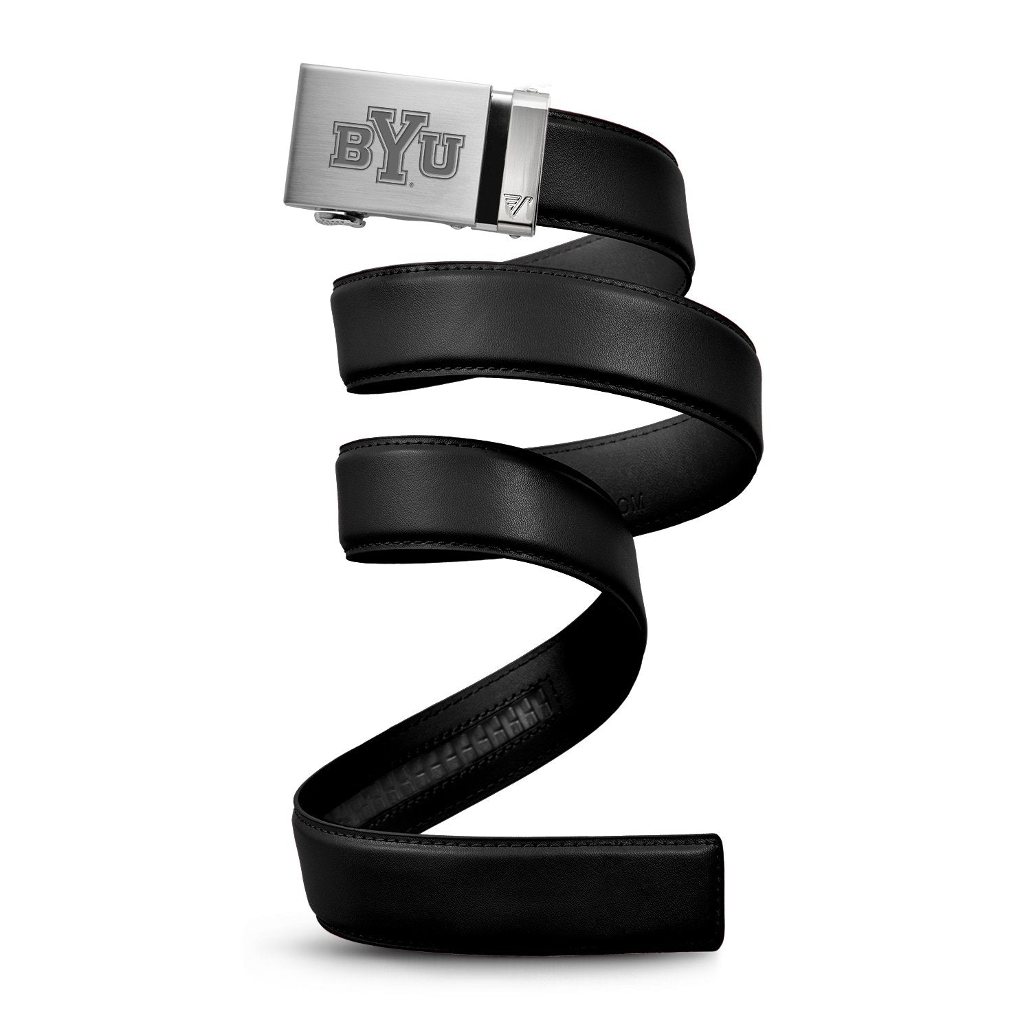 The officially licensed BYU Cougars Belt features an imprinted team logo and team name on the buckle under a clear acrylic finish. Genuine leather strap with protective coating and the interior houses a special track which is part of the unique no-holes perfect fit system. The buckle can be detached from the leather strap so you can always trim it down to size.