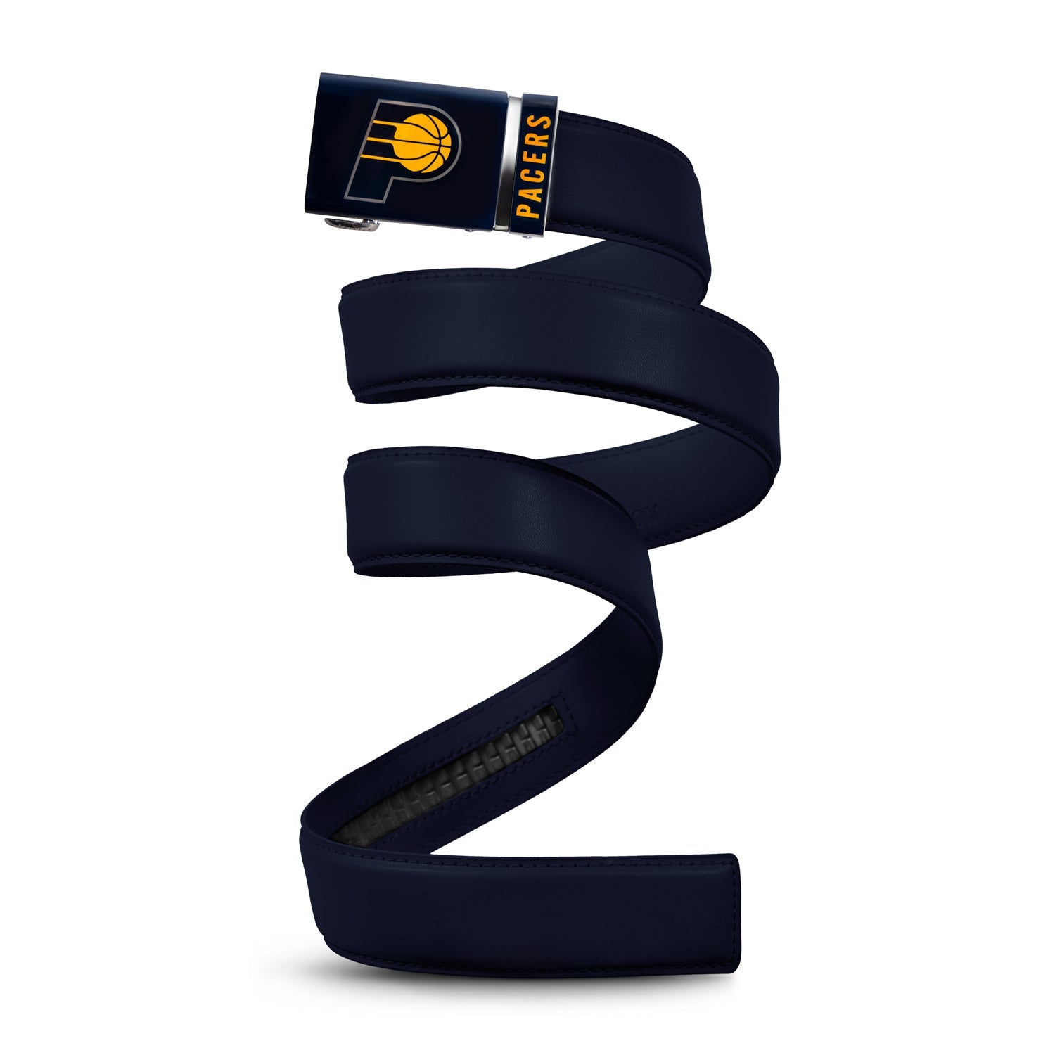 The officially licensed Indiana Pacers Belt from Mission Belt Co. features an imprinted team logo and team name on the buckle under a clear acrylic finish. Genuine leather strap with protective coating and the interior houses a special track which is part of the unique no-holes perfect fit system. The buckle can be detached from the leather strap so you can always trim it down to size.
