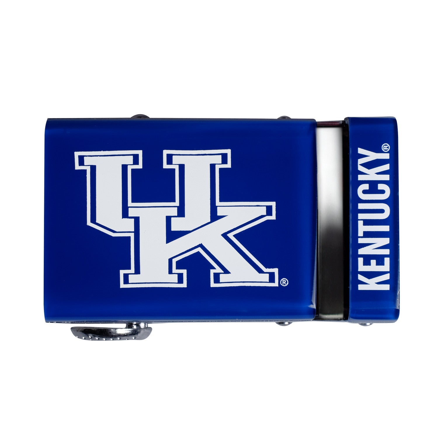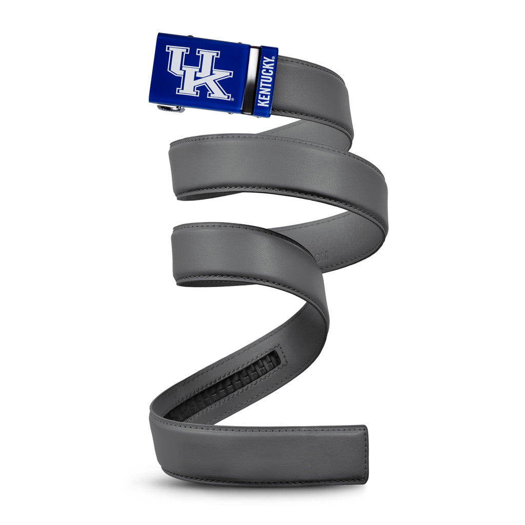 The officially licensed Kentucky Wildcats Belt features an imprinted team logo and team name on the buckle under a clear acrylic finish. Genuine leather strap with protective coating and the interior houses a special track which is part of the unique no-holes perfect fit system. The buckle can be detached from the leather strap so you can always trim it down to size.