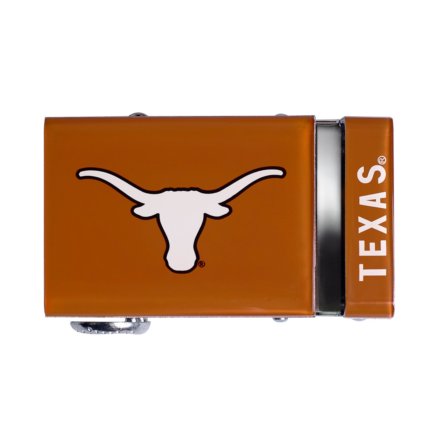 The officially licensed Texas Longhorns Belt features an imprinted team logo and team name on the buckle under a clear acrylic finish. Genuine leather strap with protective coating and the interior houses a special track which is part of the unique no-holes perfect fit system. The buckle can be detached from the leather strap so you can always trim it down to size.